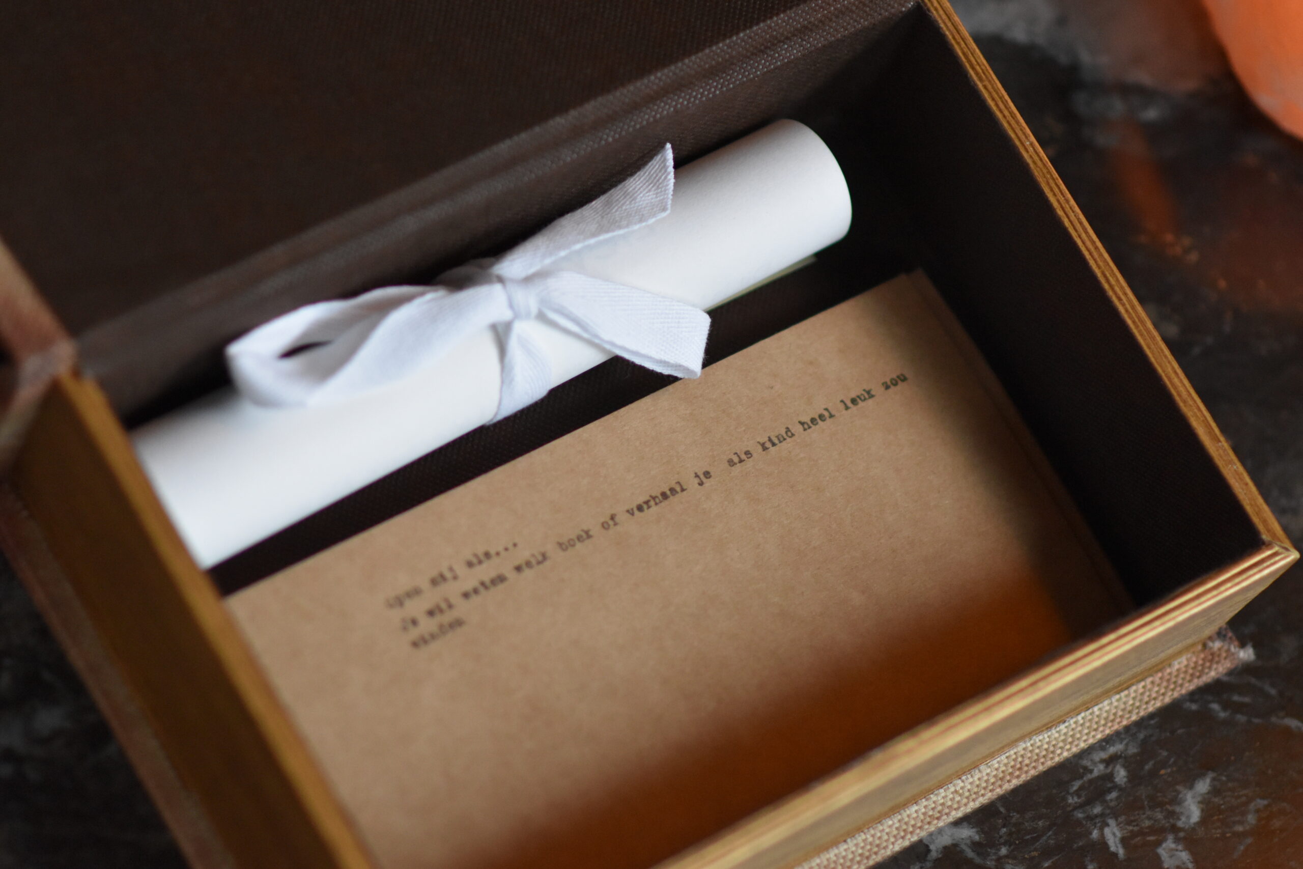 3. Ontvang en deel je box: Zodra alle antwoorden zijn verzameld, drukken en verzenden wij de box. Geniet van het ontvangen en delen van deze bijzondere herinnering met elkaar!
